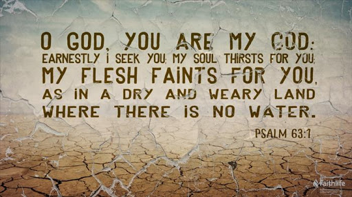 You, God, are my God, earnestly I seek you; I thirst for you, my whole being longs for you, in a dry and parched land where there is no water.